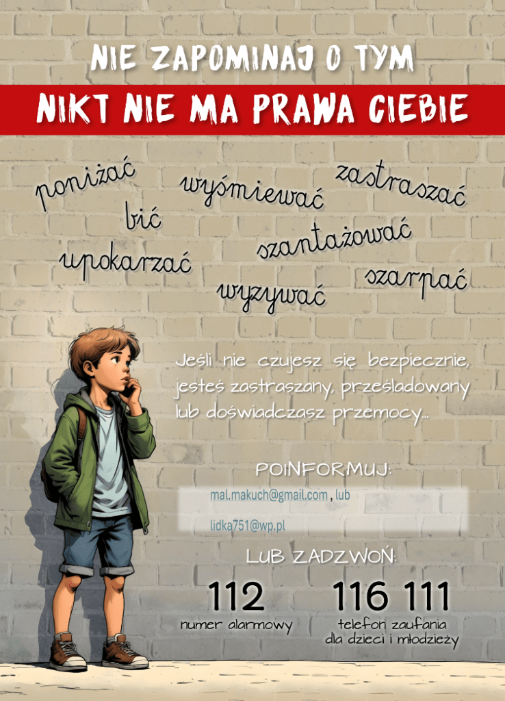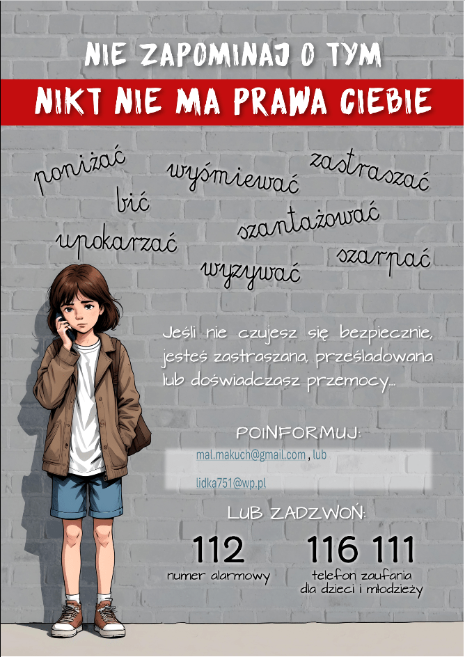 - Nie bądź obojętny, gdy komuś dzieje się krzywda. Zawsze poinformuj o tym osobę dorosłą.